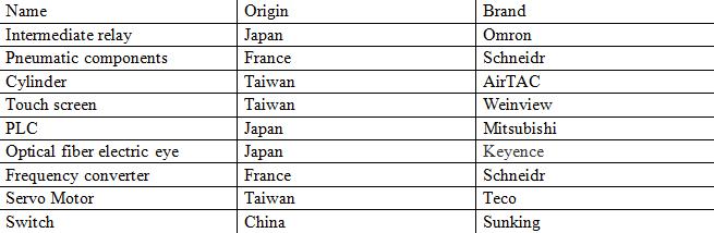 2) நியூமேடிக் பாகங்கள், மின்சார பாகங்கள் மற்றும் செயல்பாட்டு பாகங்களில் மேம்பட்ட உலக புகழ்பெற்ற பிராண்ட் கூறுகளை ஏற்றுக்கொள்வது.