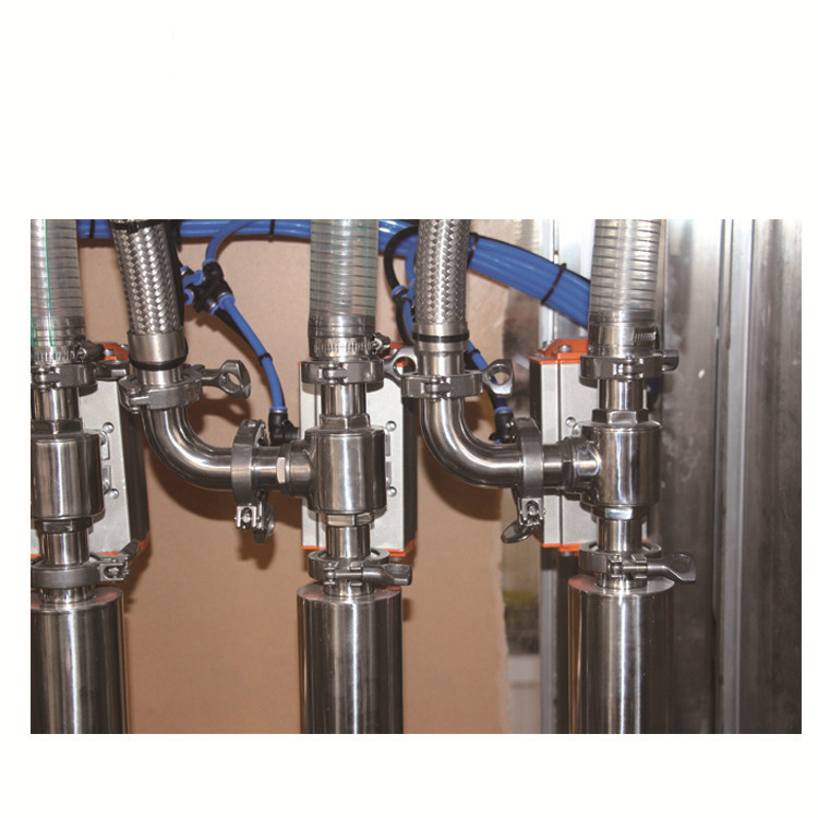 3. இது இரண்டு-ரயில் பாட்டில் உணவு, இரண்டு-ரயில் நிரப்புதல் மற்றும் இரண்டு-முனை தொப்பி திருகுதல் அல்லது உருட்டல் மற்றும் அழுத்துவதன் மூலம் அதிக வெளியீட்டின் தேவையை பூர்த்தி செய்ய முடியும். இந்த இயந்திரம் அதிக நிரப்புதல் துல்லியத்தைக் கொண்டுள்ளது மற்றும் விரைவாக-கூட்டு எஃகு பிஸ்டன் பம்பைப் பயன்படுத்துவதன் மூலம் பிரித்தெடுத்து வசதியாக கருத்தடை செய்ய முடியும். நிலையான முறுக்கு தொப்பி திருகு மற்றும் நியூமேடிக் பாதுகாப்பான் ஆகியவற்றைப் பயன்படுத்தி, சீல் செய்யப்பட்ட வாய் கசிவு இல்லாதது.